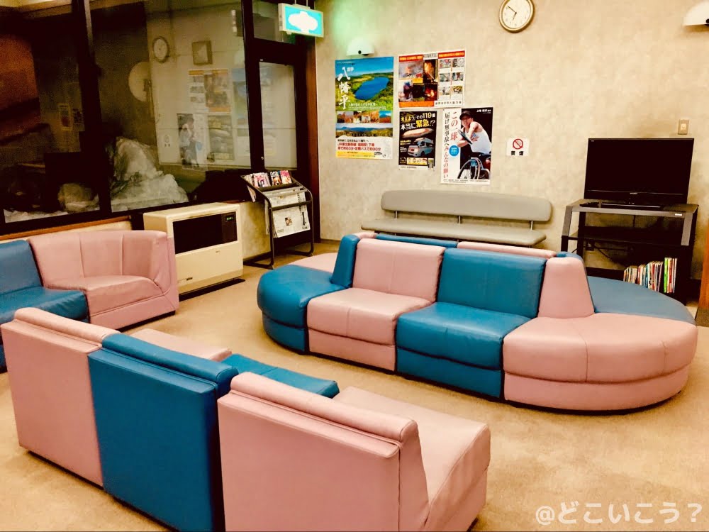 あとは1階の浴室の入り口にもかるく休憩するところがあったので、ここで誰かを待ちながらテレビや新聞を読んだり、