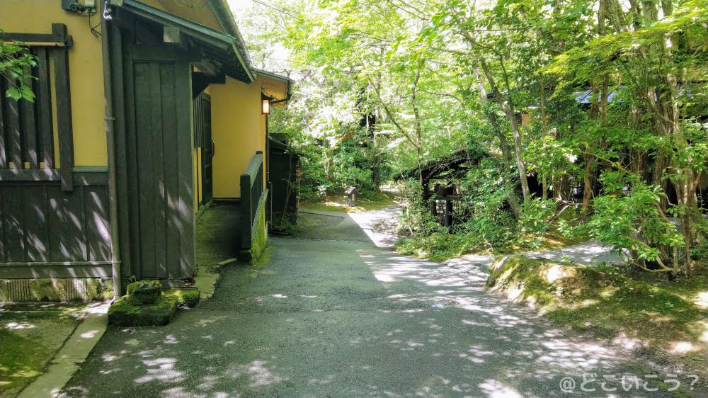 黒川温泉街からは少し外れた場所にあります。温泉街から歩いて行くのは大変なので、車などで行きましょう。